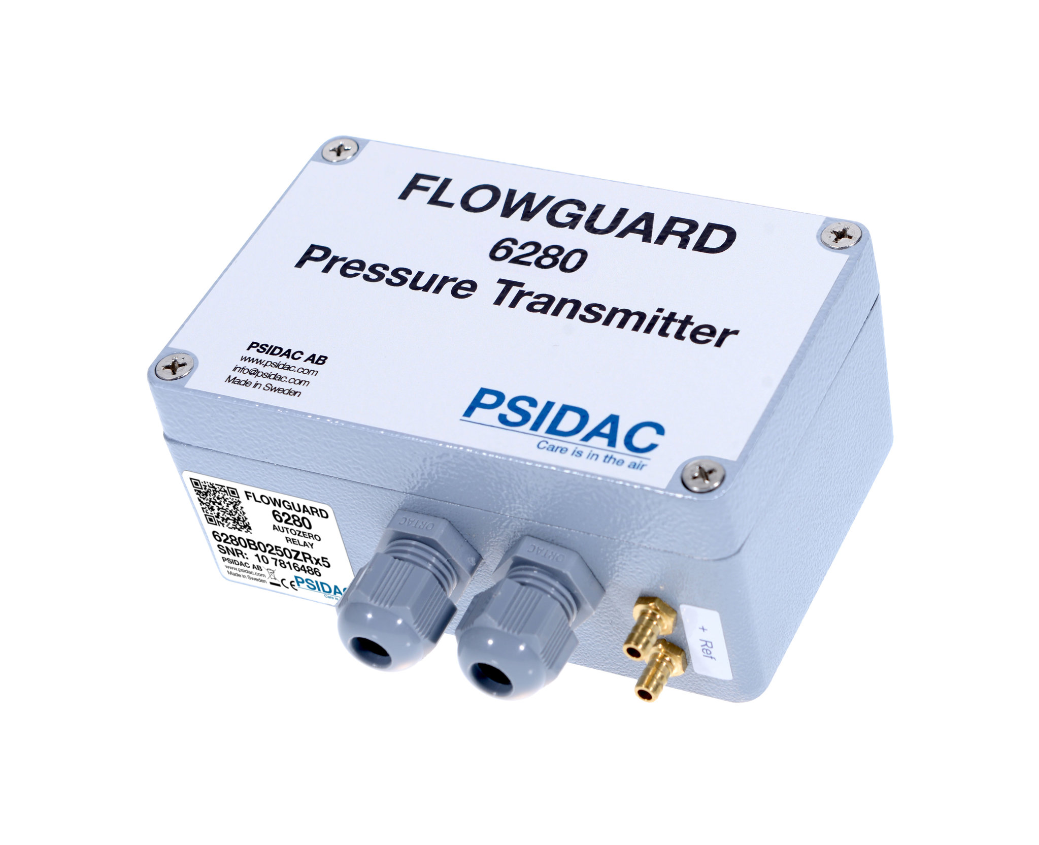 De PSIDAC 6280 FlowGuard is een standaard lage-ruimtedruktransmitter, ontworpen voor statische druk­metingen in kanalen en isolatieruimtes. Hij gebruikt een siliciummembraan met capacitieve meettechniek voor extreem stabiele en duurzame readings, en biedt twee volledig configureerbare analoge outputs plus optionele digitale interfaces voor maximale flexibiliteit tijdens installatie en onderhoud.
