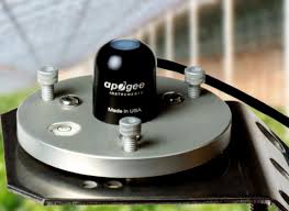 Zelf-gevoede groeilicht (PAR) sensor. Uitstekende PAR sensor voor het meten aan zonlicht. De sensor is bestand tegen elk soort weer en dankzij zijn koepelvormig model reinigt deze zichzelf wanneer deze nat wordt. Dit komt omdat water makkelijk weg kan vloeien van het meet oppervlak van de sensor.